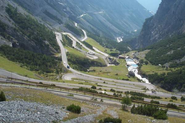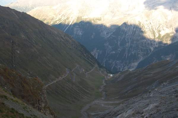 Das Stilfser Joch wird oft als der König der Pässe bezeichnet. Und dies nicht zu unrecht. Berühmt ist er vor allem wegen seiner 48 Kehren, die vor allem im oberen Teil unerbittlich die Steilwand immer wieder kreuzen und mit Steigungen bis zu 13% aufwarten. Außerdem läßt sich am Stilfser Joch eine Höhendifferenz überwinden, die sich sonst wo kaum finden läßt. Der Verkehr ist allerdings auch entsprechend. Die vielen Wohnmobile nerven vor allem bei der Abfahrt und man muß in den engen Kehren höllisch aufpassen.