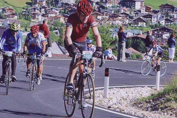Während der anschließenden Abfahrt konnte ich mich zwar wieder einigermaßen erholen, doch am letzten Pass zum Falzarego/Valparola fehlte einfach der entscheidende Druck auf dem Pedal. Mein Gefühl irrte leider nicht: am Falzarego war ich 2:30 Minuten hinter meinem Plan. Damit war fast schon klar, dass die 6:00 nicht zu packen waren. Schließlich wollte ich auf der letzten Abfahrt kein unnötiges Risiko eingehen. Nun hieß es wenigstens die Zeit vom Vorjahr zu unterbieten. Auf den letzten Kilometern von La Villa nach Corvara hab ich dann auch nochmals alle Kräfte mobilisiert und es hat gerade noch geklappt. Mit einer Endzeit von 6:03:18 war ich 1:16 Minuten schneller als 2004.