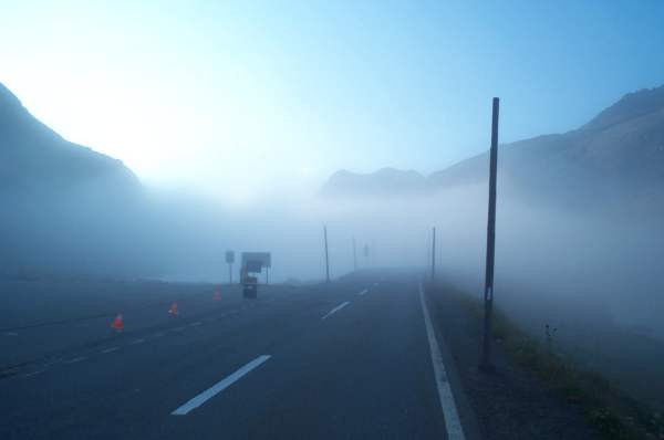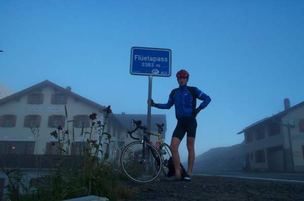 Östlicher Ausgangsort der Fahrt über den Flüelapass ist Susch im Unterengadin. Gleich zu Beginn steigt die sehr gut ausgebaute Straße etwa 3km lang mit knapp 10% an, ehe die Strecke im Mittelteil etwas flacher wird. Sobald die Baumgrenze erreicht wird, wird’s wieder steiler. Die Landschaft ist dann hochalpin geprägt und wird von Schutt- und Geröllbrocken dominiert. Auf der Passhöhe liegen links und rechts der Straße zwei kleine Seen und eine kleine Herberge.