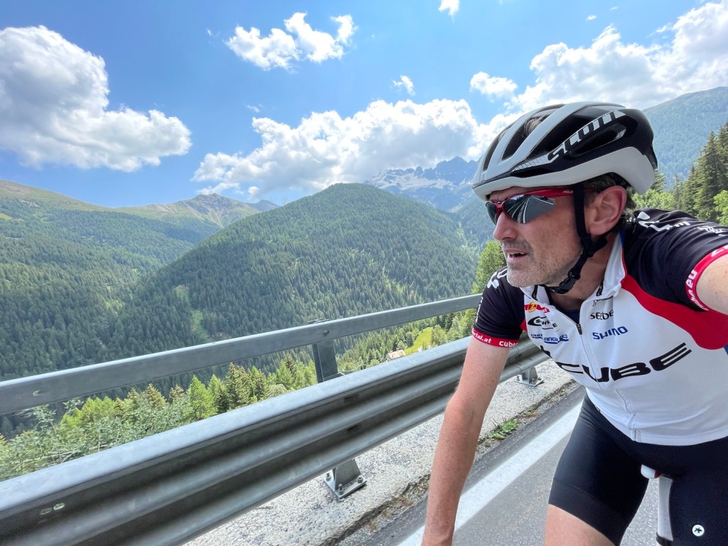 Die Anfahrt von Bormio bis zur Passhöhe zieht sich 15 km lang sehr gleichmäßig mit nur wenigen Kehren die Hänge hoch. Highlight ist der herrliche Blick auf die Cima de’Piazzi, mit 3439 m der höchste Berg der Livigno-Alpen.