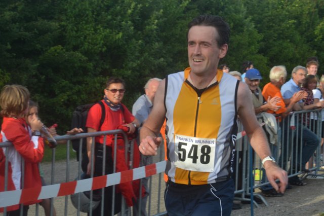 Pünktlich um 18 Uhr war Startschuss. Ich reihte mich für meine Verhältnisse sehr weit vorne ein, um nicht unnötig Zeit zu verlieren. Vom Training bin ich ja ganz andere Zeiten gewohnt, als die 4:15 min/km, die nötig gewesen wären, um am Ende unter 1:30 h zu bleiben. Erster Kilometersplit: 4:22. Gut ein wenig noch anziehen. 4:16 auf dem zweiten, doch dann wurde doch schnell klar, dass mein Ziel etwas zu hoch gesteckt war. Bei 25 Grad im Schatten konnte ich das Tempo nicht halten. Interessanterweise erging’s wohl den meisten anderen ähnlich, denn obwohl sich meine Kilometerzeiten so bei knapp 4:30 einpendelten, wurde ich nicht überholt – im Gegenteil. Je länger das Rennen lief desto mehr Läufer konnte ich wiederum überholen.