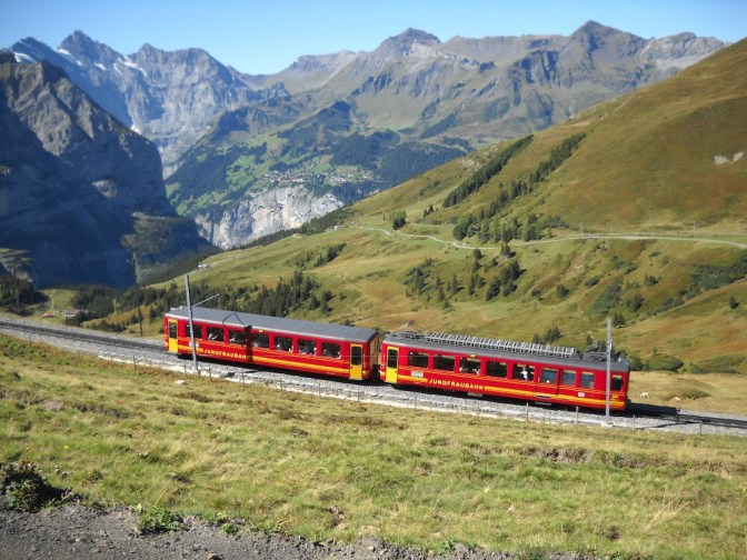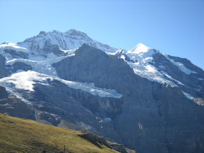 Langsam aber sicher näherte ich mich der „Mann mit dem Hammer“-Marke so Mitte der 30er. Aber Fehlanzeige! Vermutlich überwogen bereits die Glücksgefühle so sehr, dass ich ohne Probleme Kilometer um Kilometer abspulen konnte. Dazu kam nun ja auch noch das Postkartenpanorama mit Jungfrau, Mönch und Eiger, die auf dem letzten Abschnitt als ständige Begleiter fungierten.