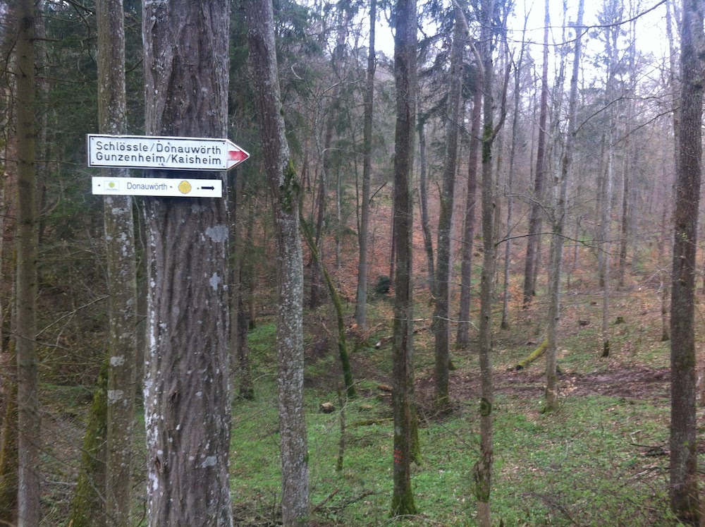 Beinahe Alpingefühl kam dann am Gipfelkreuz des nahe gelegenen Bockbergs auf. Nun folgte ich ein paar Kilometer dem Frankenweg in Richtung Norden, ehe ich im großen Bogen über Kaisheim (und ein paar zähen Waldautobahnen) wieder zum Ausgangsort zurückkehrte.