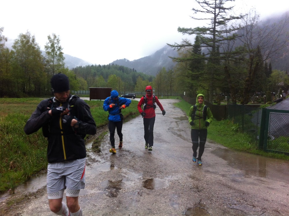 Aber von vorn. Bereits vor einigen Wochen hatte ich zu einem Vorbereitungslauf für den Zugspitz Ultratrail in den Ammergauer Alpen geladen. Dass dann trotz zahlreicher Zusagen doch „nur“ fünf Unerschrockene am Treffpunkt vor der Schwangauer Therme eintrafen, lag wohl hauptsächlich an der wirklich miesen Wettervorhersage. Nach dem Transfer nach Oberammergau (Danke Matthias!) starteten wir dann auch bei mäßigem Regen und im Vergleich zu den Vortagen deutlich niedrigeren Temperaturen.