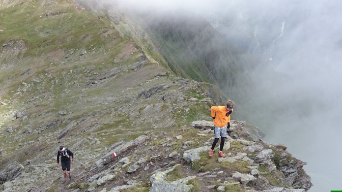 Doch je weiter wir in Richtung Süden vorankamen, umso öfter Riss der Himmel wieder auf und allmählich tauten auch unsere kalten Glieder wieder auf. Da wir gegenüber dem ursprünglichen Zeitplan bereits deutlich in Verzug waren und Niklas bereits vom ersten Verpflegungspunkt etwas südlich des Timmelsjochs gestartet war, uns entgegen zu laufen, entschied ich, dass Tomm, schon mal weiterlaufen sollte und ich dann mit Sonja und Thomas nachkommen würde. Doch nun kam alles ganz anders: ein altes Knieproblem machte sich bei Sonja wieder bemerkbar, vor allem bergab. Und auch Thomas hatte inzwischen Mühe. Eine aufkommende Erkältung machte ihm zunehmend zu schaffen. Gerade in dem Moment, wo sich die Wetterbedingungen deutlich zu bessern schienen, musste eine Entscheidung gefällt werden. Sonja und Thomas stiegen aus. Sehr schade! Aber vermutlich die richtige Entscheidung. Und: die bis dahin absolvierten knapp 25 km im hochalpinen Gelände waren alles andere als ein Kindergeburtstag. Wir werden unseren ersten gemeinsamen Ultra bestimmt nachholen, versprochen!