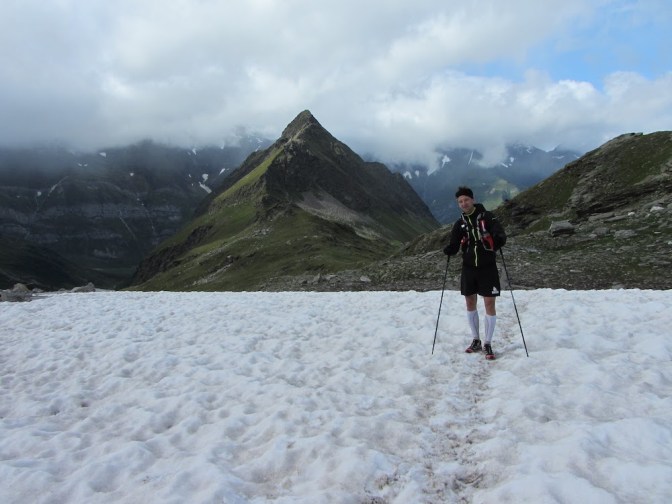 Samstag, 16.08.2014, 4:30 Uhr, Start in Sölden. Kein Niederschlag, die Temperaturen gerade für den ersten langen Aufstieg mit 1600 Höhenmetern gar nicht mal schlecht und der Mond, der leicht durch die Wolkendecke schimmerte stimmten uns schon mal positiv. Wir kamen gut voran. Nach etwa zwei Kilometer Asphalt bzw. Forststraße zum Einlaufen ging’s direkt in den teils steilen Anstieg zum Brunnenkogelhaus (2738 m). Jeder folgte seinem Rhythmus und von Zeit zu Zeit sammelten wir uns wieder. Bei zunehmender Helligkeit zauberten die Wolkenfetzen, die noch in den Bergen hingen und der Neuschnee, der oben auf den hohen Gipfeln lag, eine tolle Stimmung.