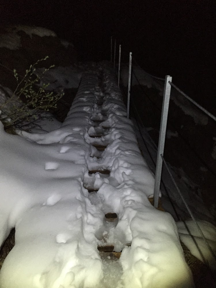 Gottseidank hab ich anschließend bald wieder eine Spur im Schnee gefunden. Ohne GPS wäre ich sowieso total aufgeschmissen gewesen. Obwohl ich die Strecke größtenteils kannte, in der Nacht sieht’s dann doch ganz anders aus.