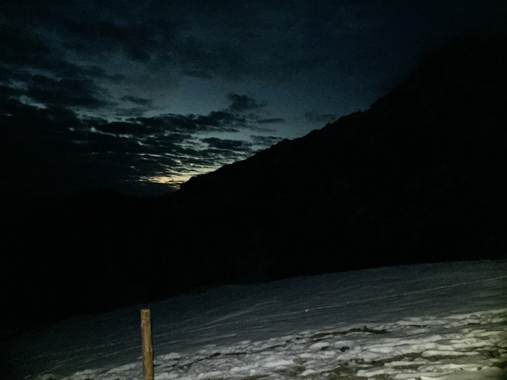 Nach kurzem Downhill zur Kenzenhütte wurde es richtig hart. Mit Kenzensattel, Geiselsteinsattel und Gabelschrofensattel folgte ein etwa 10 km langer Abschnitt mit geschlossener Schneedecke. Während meist einigermaßen gespurt war, verlor ich diese ausgerechnet etwa 100 Höhenmeter unterhalb des Gabelschrofensattels. Eine extrem steile Rampe mit ca. 50 cm Neuschnee nach 40 Kilometern in der Nacht um halb drei. Nicht nur für die Oberschenkel, sondern auch mental ein hervorragendes Training!