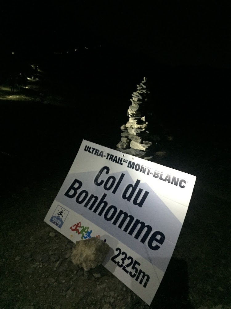 Christian: Ich war sehr defensiv ins Rennen gestartet und befand mich irgendwo im Mittelfeld. Offensichtlich waren viele bis dahin vor mir liegende Teilnehmer eher (zu) schnell angegangen. Auf den über 20 Kilometern zum Col du Bonhomme auf 2441 Metern überholte ich etwa 400 Läufer. Ich hatte meinen Rhythmus gefunden und es rollte. Auch auf dem anschließenden 1000 Hm Abstieg nach Les Chapieux hatte ich keine Probleme. Dazu beste Bedingungen bei sternenklarer Vollmondnacht – es war einfach herrlich zu laufen! Auf dem folgenden Asphaltabschnitt konnten wir sogar die Stirnlampen ausschalten und die umliegende Bergwelt genießen.
