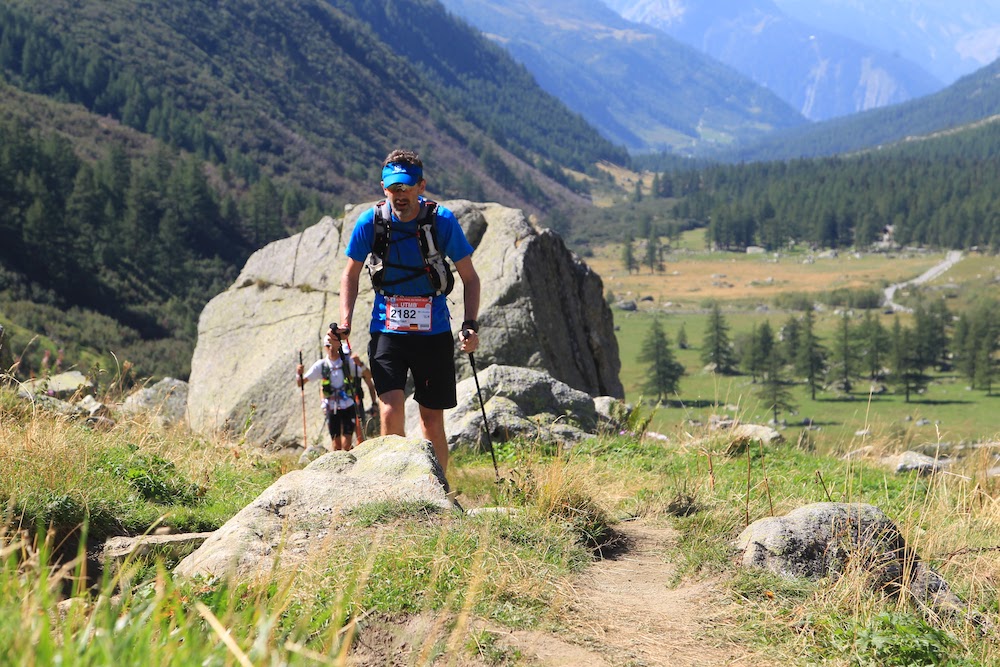 Christian: Ja, glücklicherweise. Denn es war inzwischen ziemlich frisch geworden und ich zog mir zum ersten Mal meine Jacke über. Irgendwie bin ich am Lac Combal davon ausgegangen, dass es bis Courmayeur nur noch bergab gehen würde. Um so überraschter war ich über die 500 Höhenmeter hinauf zum Arret du Mont-Favre. Mein rechtes Schienbein zwickte ein wenig. Doch wir waren eine gute Gruppe zu diesem Zeitpunkt, wechselten uns in der Führung ab und so überstand ich schadlos ein erstes kleines Zwischentief.