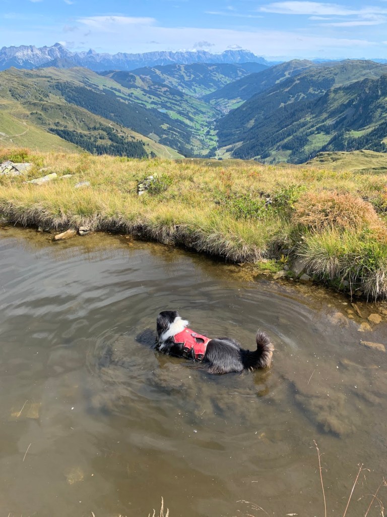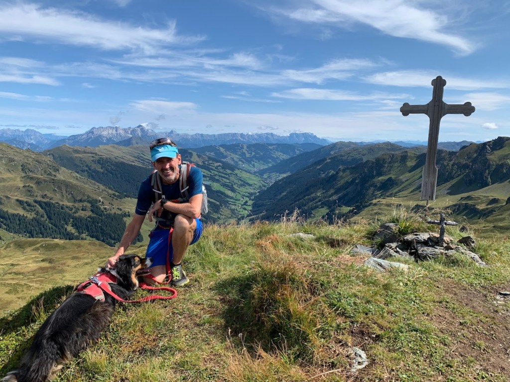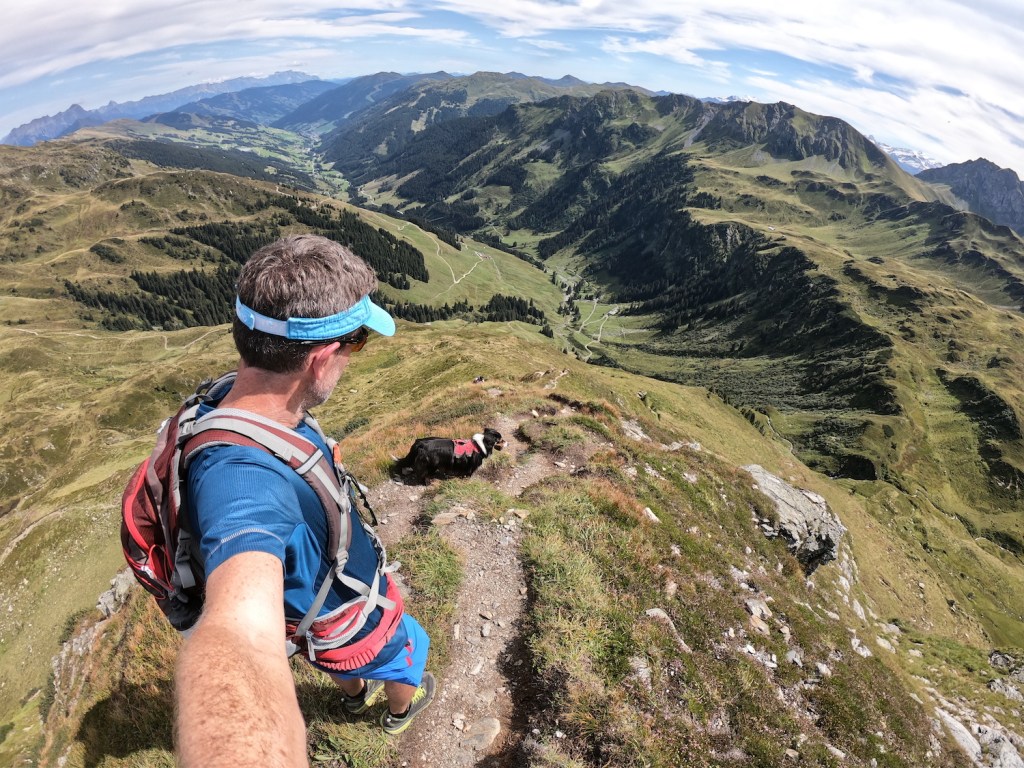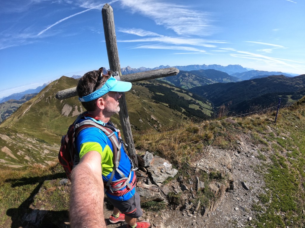 Die “Seven Summits of Saalbach-Hinterglemm” standen am zweiten Tag auf dem Programm. Die ersten 1000 Höhenmeter dieser Saalbacher Königsetappe absolviert man gemütlich mit dem Schattbergexpress (Bemerkung: für Hunde wird ein Maulkorb benötigt). Von der Bergstation aus führt dann der weitere Weg über sieben Zweitausender, aufgereiht wie auf einer Perlenkette. Obwohl man vom Start weg die gesamte Tour bis zum letzten und höchsten Gipfel, den Geisstein (2363 m) einsehen kann, sollte man sich nicht täuschen lassen. Das ständige Auf und Ab summiert sich am Ende ebenfalls auf über 1500 Höhenmeter und inklusive des Abstieg am Ende zur Lindlingalm auf über 20 km. Das heißt auch hier ist eine gute Grundkondition nötig und aufgrund einiger etwas felsiger Stellen auch entsprechende Trittsicherheit. Dafür wird man mit phänomenalen Ausblicken belohnt. Gerade an klaren Spätsommertagen, so wie wir ihn beispielsweise hatten, kann man die Sicht auf die scheinbar greifbar nahen 3000er wie Kitzsteinhorn oder selbst den Großglockner genießen.