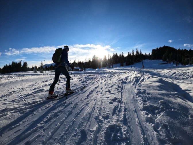 Nachdem in diesem Corona-Winter die Lifte erst mal geschlossen bleiben, startete auch mein Sohn Niklas als Tourengeher in die Saison – allerdings nicht mit Skiern sondern mit Schneeschuhen und Snowboard auf dem Rücken.