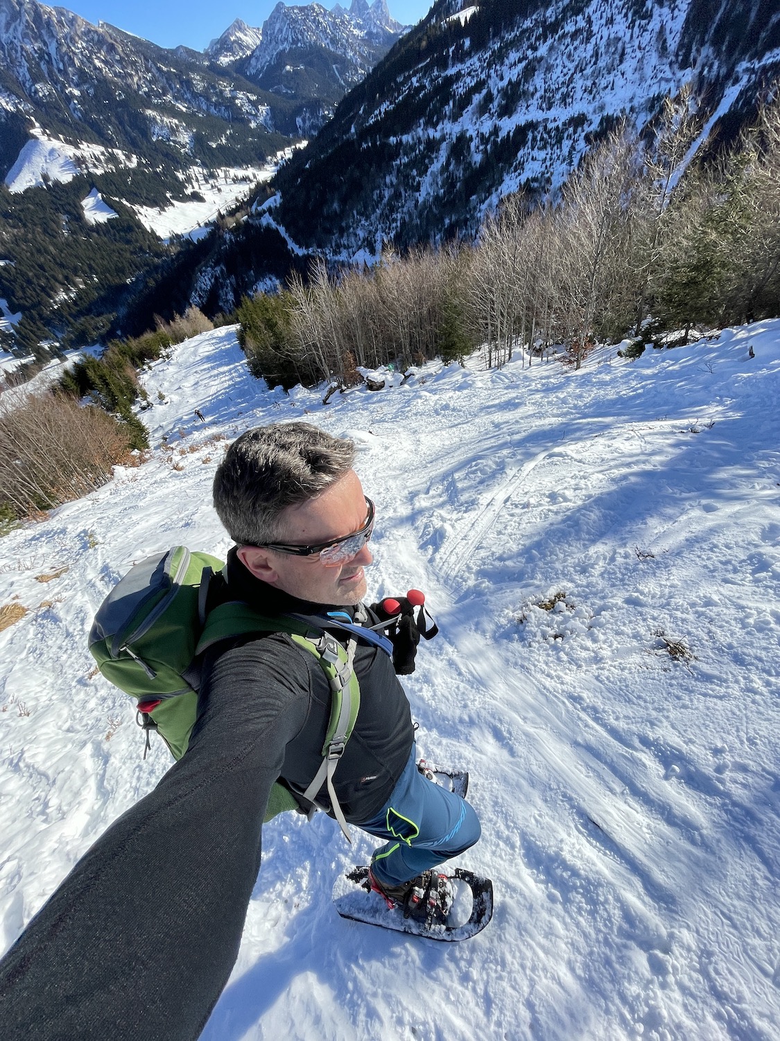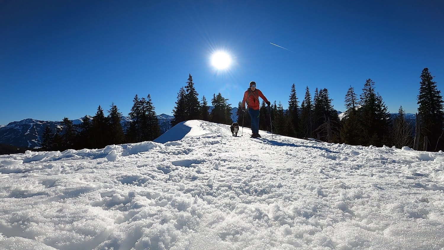 Während der Schönkahler ein richtiger Modeberg unter Schneeschuhgängern ist, waren wir auf dem Einstein (zumindest am späten Nachmittag) die einzigen, wobei die geringe Schneehöhe vor allem südseitig dieses Unternehmen doch sehr begünstigte.
