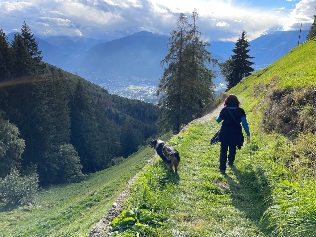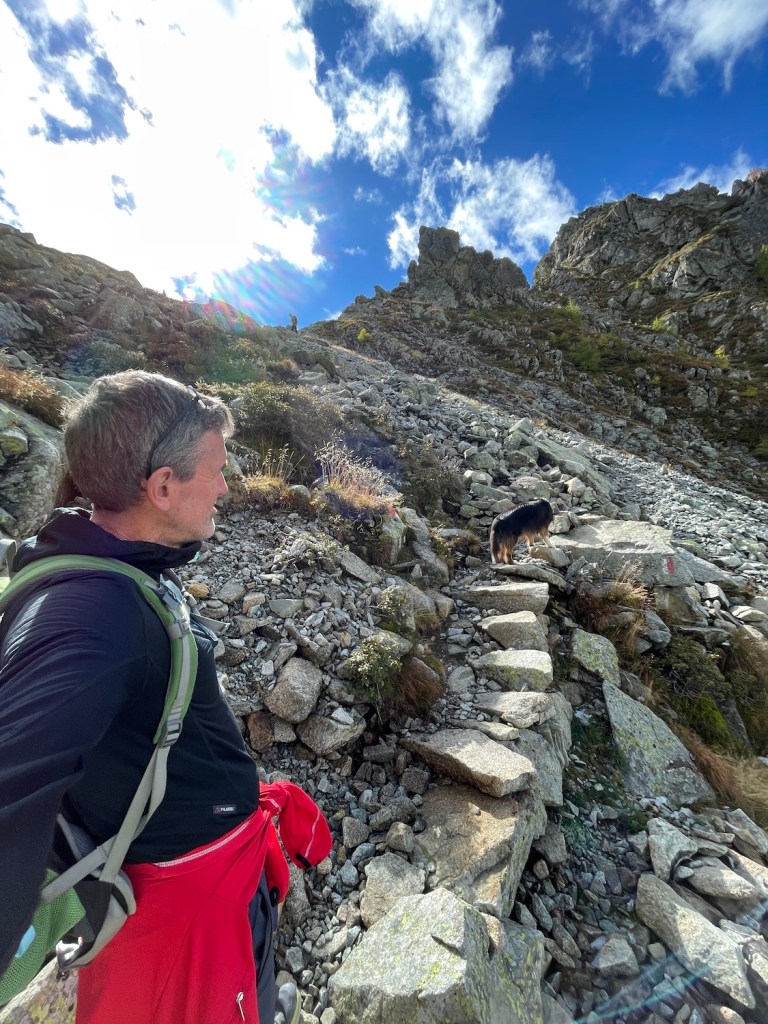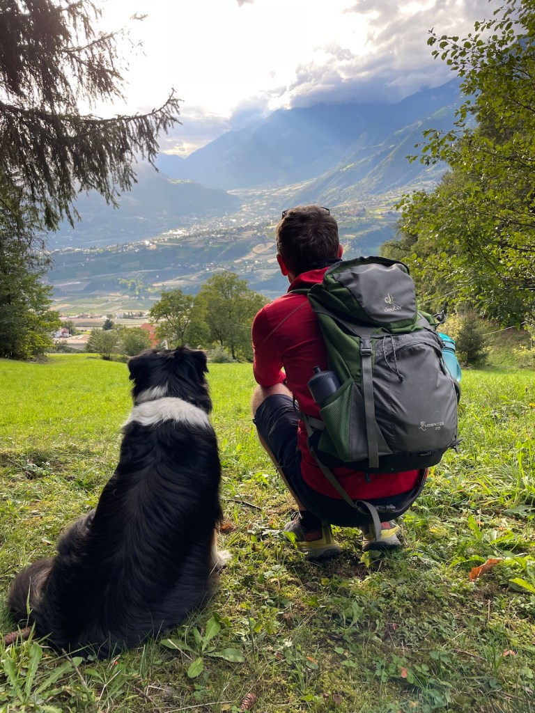 Unseren 25. Hochzeitstag haben Karin und ich selbstverständlich mit einer gemeinsamen Bergtour gebührend gefeiert. Von Schenna ging’s zunächst mit der Taser Seilbahn zur gleichnamigen Alm und von dort moderat weiter bis zur Ifinger Hütte. Dort entschieden wir nun, noch bis zur Ifinger Scharte hochzusteigen. Der weitere Weg auf einem schmalen und wohl kaum begangenen Pfad zum Egger Jöchl war ziemlich abenteuerlich. Letztendlich waren wir beide froh, als wir diese Passage gemeistert hatten. Auf dem Rückweg nach Schenna legten wir noch einen Jausenstopp im Schnuggerhof ein.