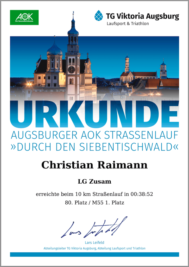 Der traditionsreiche Straßenlauf der TG Viktoria Augsburg gilt als einer der schnellsten 10 km Läufe in Schwaben. Die flache und windgeschützte Strecke durch den Siebentischwald lockt jedes Jahr die regionale Elite nach Augsburg. Alleine 97 Läuferinnen und Läufer am Ende in unter 40 Minuten und Siegerzeiten knapp an den Streckenrekorden sprachen auch 2023 wieder für sich.